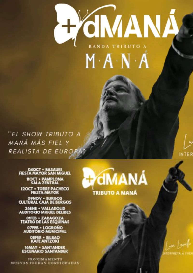 +dMANÁ, la veterana banda tributo reconocida por MANÁ en Europa, regresa a los escenarios tras el éxito de «Energía Positiva Tour» para presentar su nueva producción: «¿DÓNDE JUGARÁN LOS NIÑOS?. El nuevo show, que coge el nombre del mítico disco de Maná, propone un viaje en el tiempo para revivir los grandes himnos de los reyes de rock latino navegando entre el amor, el desamor, la preocupación por el medioambiente y la energía positiva característica de Fher Olvera y su banda. La banda tributo, que enamoró a los mismísimos Maná con sus directos, es la única a nivel europeo que ha contado con la colaboración estelar de músicos originales de la banda mexicana, como Sergio Vallín (guitarrista de Maná) y Héctor Quintana (percusionista y 2ª voz de Maná), dando buena fe de la gran puesta en escena de +dMANÁ. En palabras de Sergio Vallín, tras tocar con +dMANÁ: “Uds. hacen un show realmente fantástico. Por primera vez, he visto un concierto de Maná desde fuera del escenario. Ha sido un placer tocar con una banda con esta vibra tan especial.” Si te emocionas con canciones como “Vivir sin aire”, “Corazón espinado”, “Clavado en un bar” o “Rayando el Sol” no te pierdas el espectáculo que han avalado todos los clubes de fans de Maná en España e Italia.